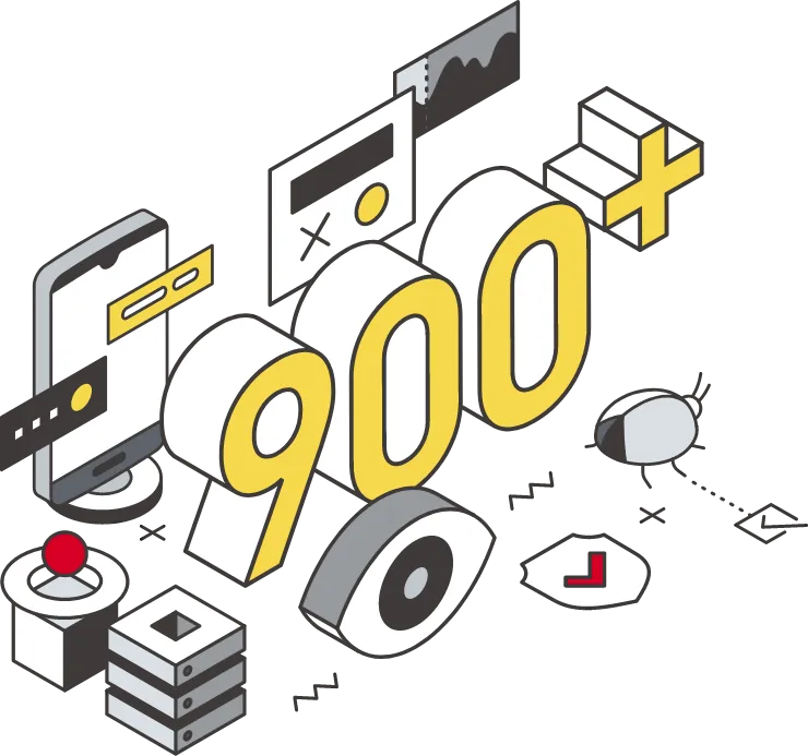 豊富なテスト知見を凝縮した900項目以上の標準テスト観点を設定。日々テスト業務をフィードバックし、リアルタイムで追加・更新を実施。テスト項目の漏れや重複を防ぐとともに、不具合の起こりやすい重点箇所を把握し、効果の高いテスト実行に活かしています。